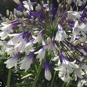 L’Agapanthus ‘Fireworks’ è una varietà spettacolare, con grandi fiori a ombrella blu e bianchi che si aprono in estate. È resistente alla siccità e perfetta per bordure e vasi.