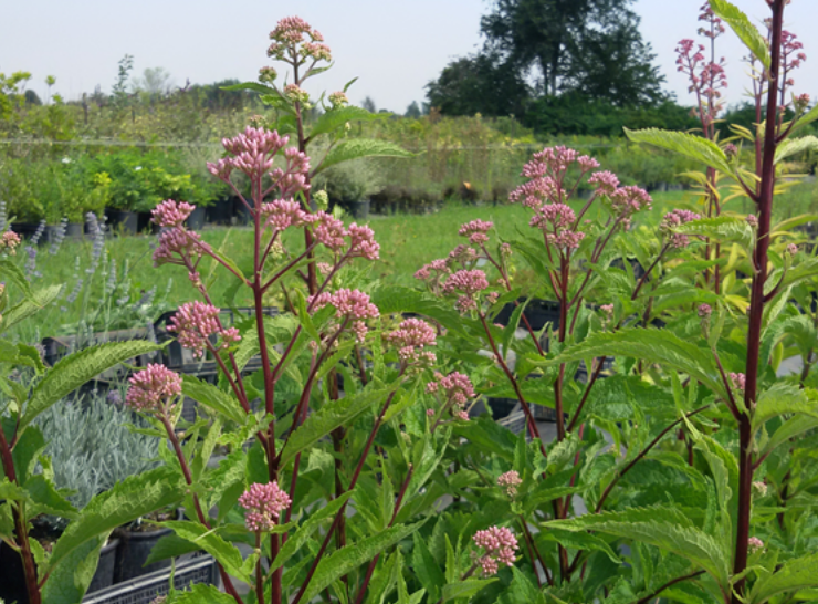 Perenne con grandi infiorescenze di fiori porpora che sbocciano in tarda estate. Attira farfalle e insetti impollinatori, ideale per bordure alte e giardini naturalistici.