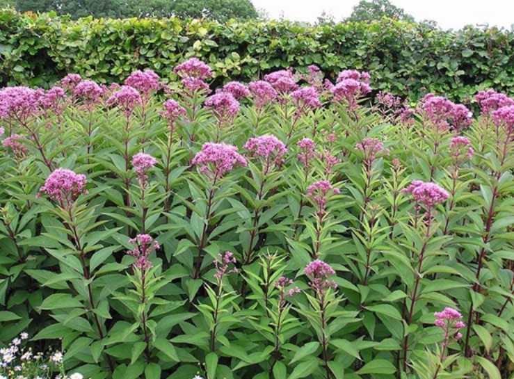 Perenne alta con fiori rosa porpora a ombrella, apprezzata per la sua capacità di attrarre farfalle. È ideale per bordure miste o per giardini naturalistici.