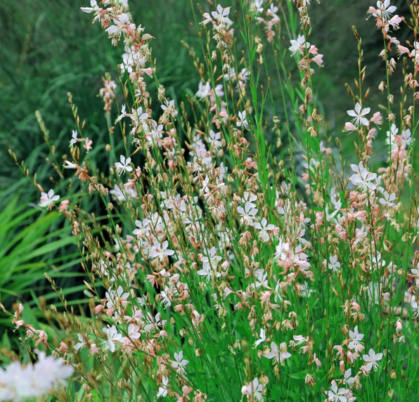 Perenne erbacea con fiori rosa chiaro che ondeggiano al vento, molto simili a farfalle. È una varietà vigorosa e resistente, ideale per giardini naturali o bordure miste.