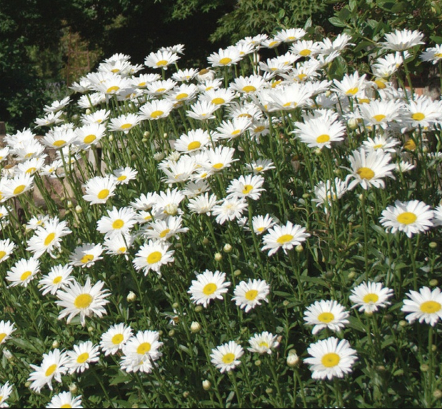 Margherita perenne con grandi fiori bianchi e centro giallo, molto resistente e di lunga durata. È ideale per bordure fiorite o giardini naturalistici. Fiorisce abbondantemente per tutta l’estate.