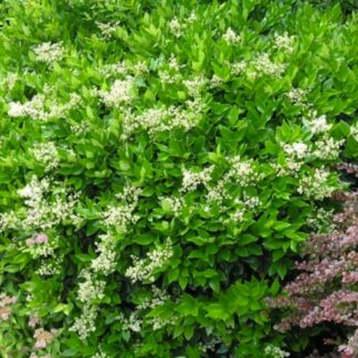 Ligustro a portamento eretto e compatto, sempreverde. Il fogliame, lucido e coriaceo, è decorativo per le variegature delle foglie nei toni del bianco-crema. Dimensioni: 2×2 m.