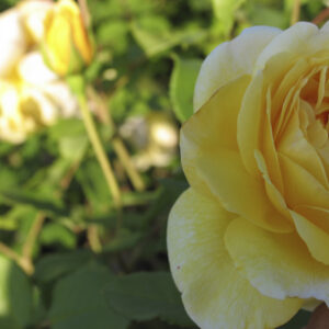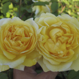 Rosa inglese con fiori grandi e doppi, di colore giallo intenso. È molto profumata e rifiorente, con un portamento cespuglioso e vigoroso, perfetta per bordure e giardini cottage.