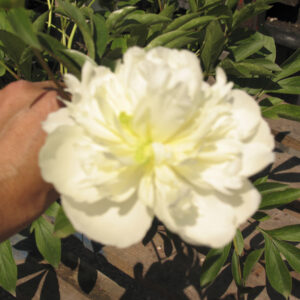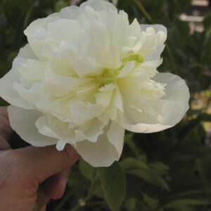 Perenne erbacea con grandi fiori doppi bianchi, leggermente profumati e molto decorativi. Pianta longeva e resistente, ideale per bordure miste e giardini formali.