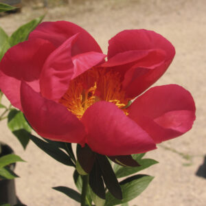 Perenne con fiori semi-doppi di colore rosso-arancio, molto appariscenti e profumati. Ideale per bordure miste e giardini formali, è apprezzata per il suo colore acceso.
