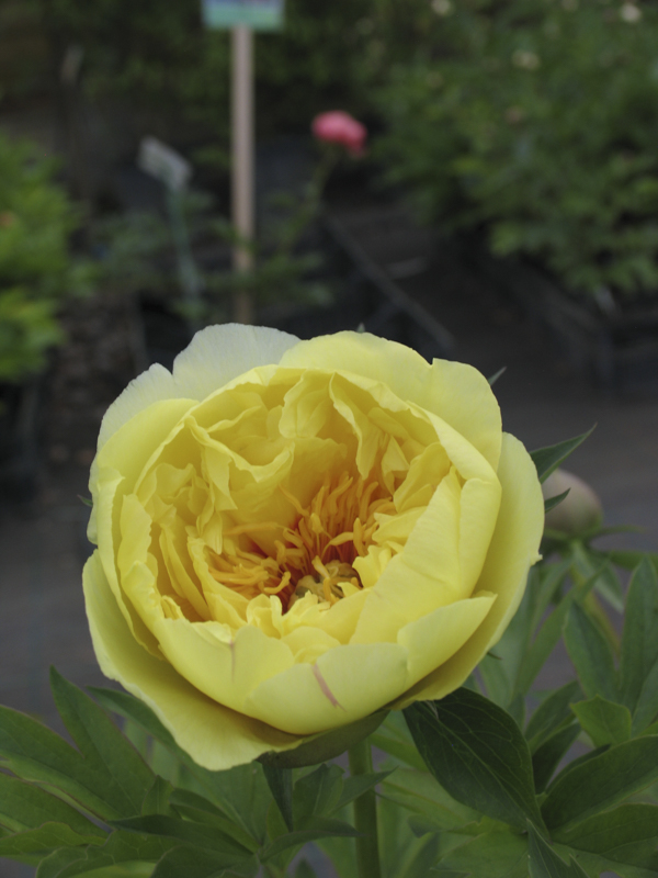 Questa Paeonia ibrida intersezionale, nota per i suoi fiori giallo chiaro con sfumature rosse alla base dei petali, ha un aspetto unico e una fioritura lunga. La pianta è robusta e resistente alle malattie.