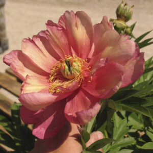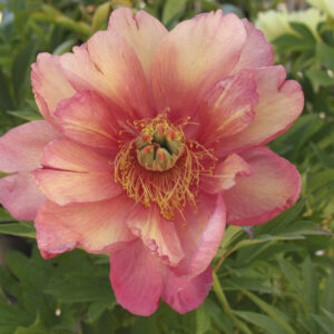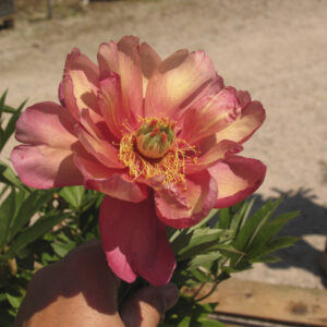 Questa varietà ITOH presenta fiori dai colori mutevoli, che passano dal rosa al corallo e al giallo man mano che la fioritura avanza. È una pianta vigorosa e molto decorativa.