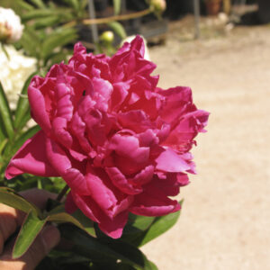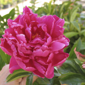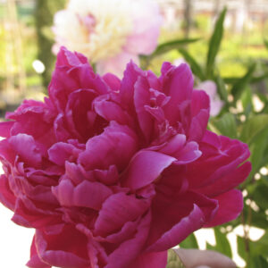 Pianta erbacea perenne con fiori doppi di colore rosso porpora, molto profumati e ornamentali. Ideale per bordure miste e giardini formali, questa Paeonia è particolarmente apprezzata per la sua robustezza e bellezza.