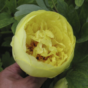 Perenne erbacea con fiori semi-doppi di colore giallo chiaro, molto profumati e decorativi. È una delle peonie più apprezzate per il suo colore insolito e la lunga durata dei fiori.