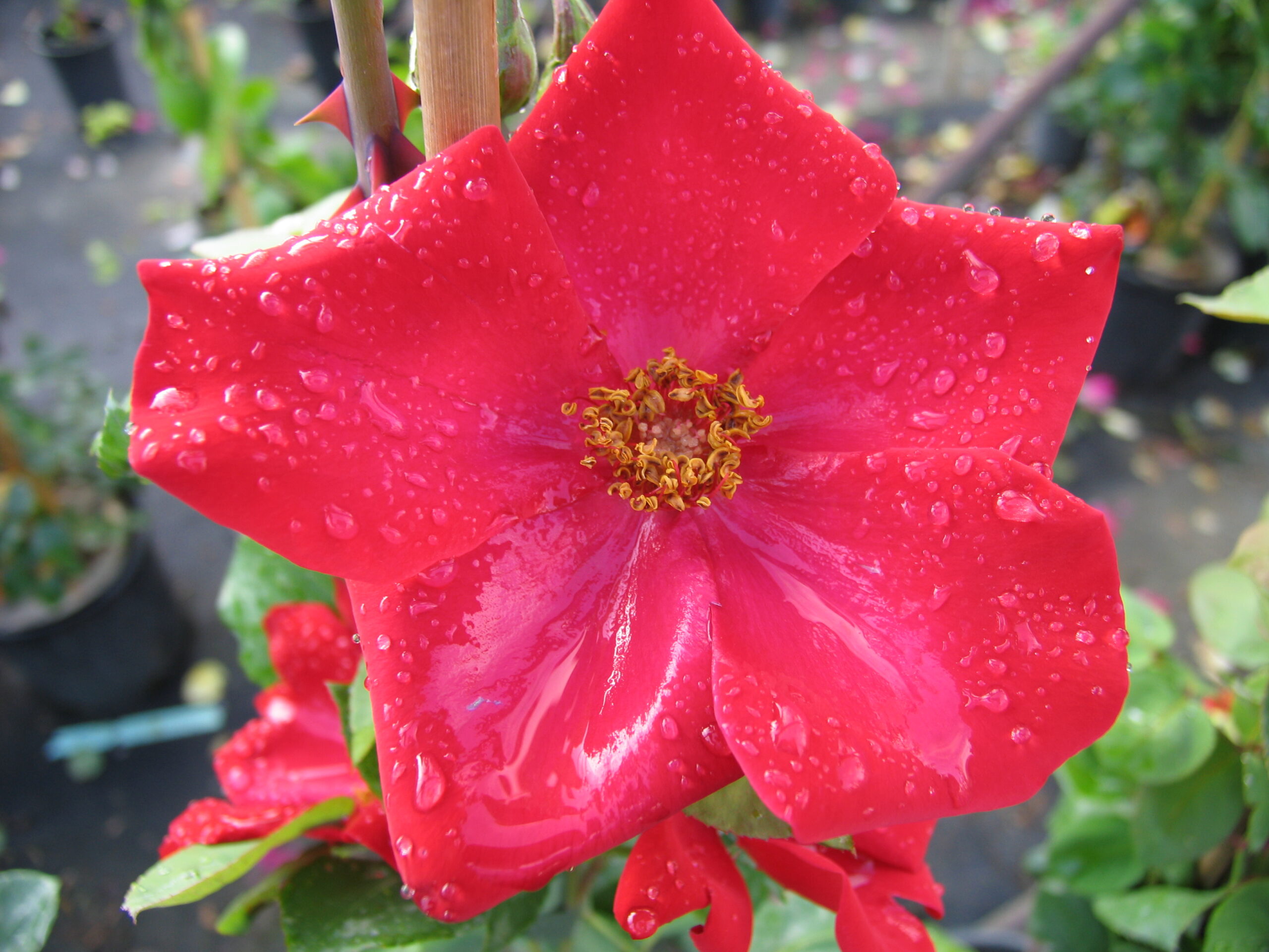 Rosa rampicante con grandi fiori singoli, di colore rosso brillante. Non ha un profumo intenso, ma la sua fioritura continua la rende ideale per pareti e pergole.
