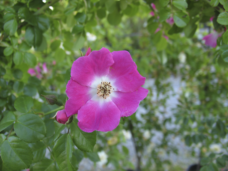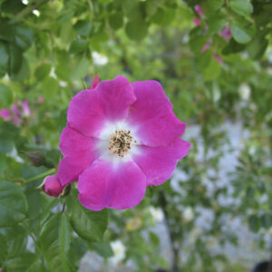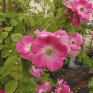 Versione a radice nuda della Rosa ‘American Pillar’. Ideale per coprire grandi strutture grazie alla sua crescita vigorosa e ai fiori singoli di colore rosa brillante con centro bianco. Resistente e spettacolare.
