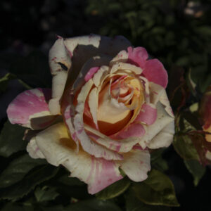 Questa rosa fa parte della serie “Roses des Peintres” di Delbard, caratterizzata da fiori striati di giallo, crema e rosa. È molto profumata e ha un portamento vigoroso, perfetta per aiuole e bordure.