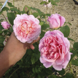 Come la versione a radice nuda, questa rosa offre fiori pieni con una fragranza intensa. È una rosa inglese rifiorente molto amata.