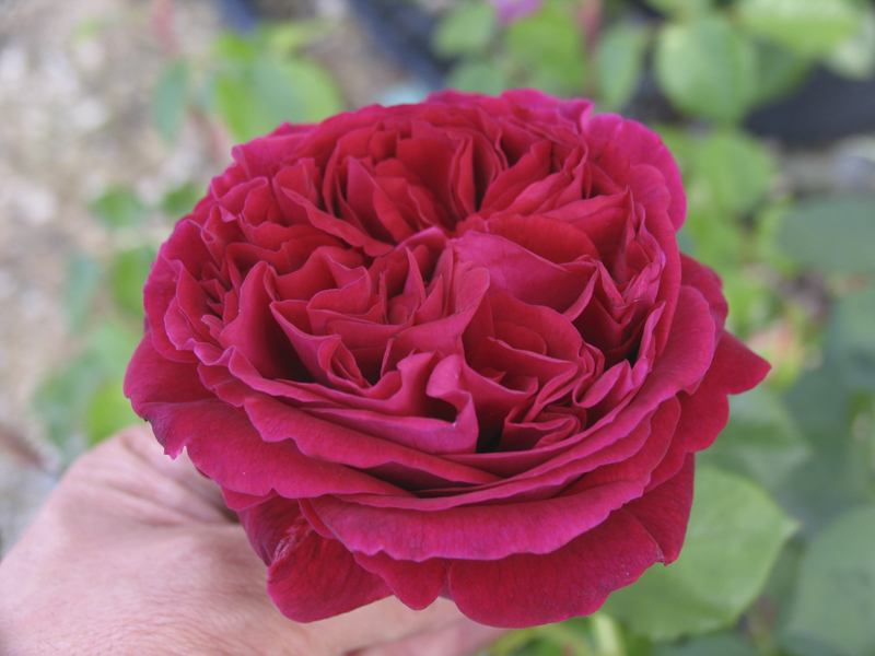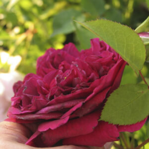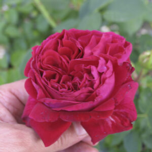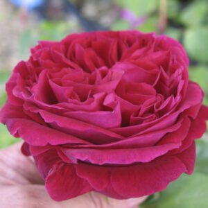 Variante a radice nuda della Rosa Falstaff, una rosa inglese dal portamento cespuglioso e dai fiori doppi e ricchi di petali. Molto profumata.