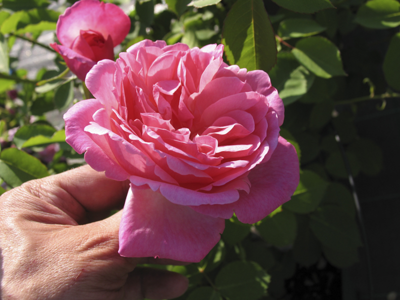 Rosa inglese con fiori grandi e doppi dal profumo delicato. Ha un portamento cespuglioso e compatto, con una fioritura abbondante e continua durante la stagione.