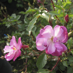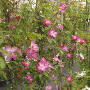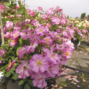 Rosa tappezzante con fiori piccoli e leggermente profumati, dal colore lavanda. È molto rifiorente e resistente, perfetta per bordure e giardini informali.