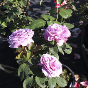 Variante a radice nuda della Rosa Lavender Ice, con fiori doppi e compatti di colore lavanda. Ideale per impianti autunnali o primaverili.