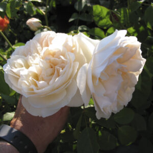 Rosa inglese con fiori a coppa doppi e leggermente profumati. Ha un portamento cespuglioso compatto e vigoroso, rifiorente e resistente alle malattie.