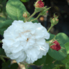 Rosa Damascena con fiori doppi e profumati di colore bianco. Ha un portamento cespuglioso vigoroso, ideale per giardini storici e bordure.