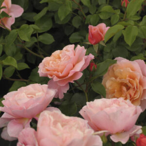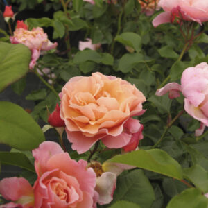 Bella floribunda nei toni caldi dell’arancio-albicocca. Ottima rifiorenza su un arbusto sano. Adatta per bordure. 0,75 x 0,60. (Meilland; Fra; 1997)