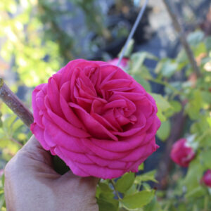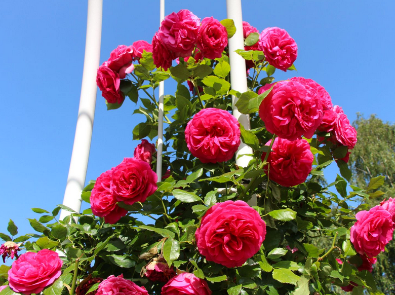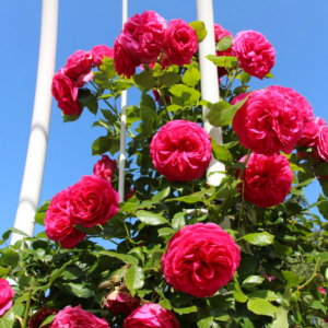 Rosa rampicante con fiori grandi e leggermente profumati. Ha un portamento vigoroso e rifiorente, ideale per pergolati e muri.