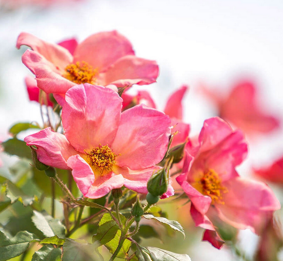 Variante a radice nuda della Rosa Morning Mist, con fiori semidoppi e leggermente profumati. Perfetta per impianti autunnali o primaverili, rifiorente e resistente.