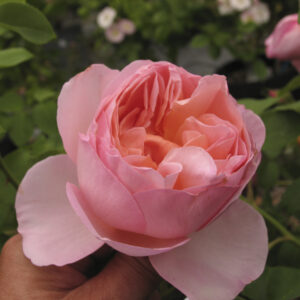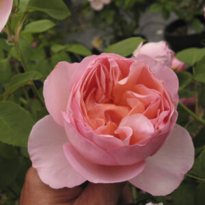 Rosa rampicante con fiori grandi, doppi e molto profumati di colore rosa pallido. Ha un portamento vigoroso e rifiorente, ideale per pergolati e muri.