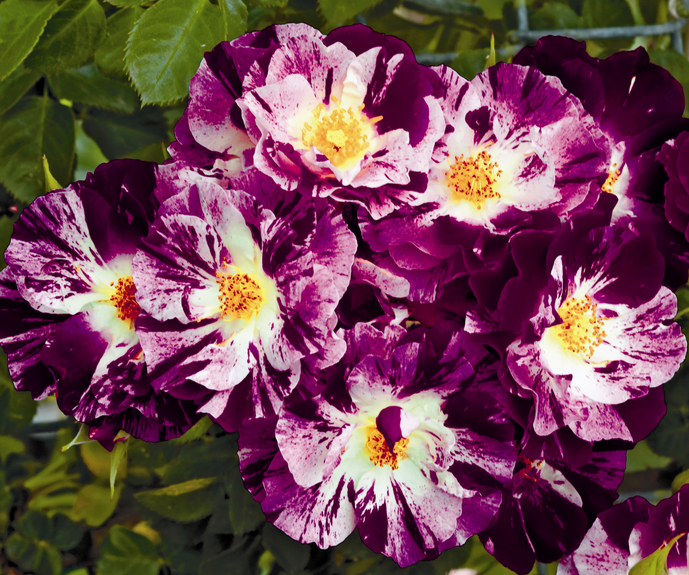 Rosa rampicante con fiori semidoppi e profumati, di colore viola scuro con centro bianco. Ha un portamento vigoroso e rifiorente, perfetta per coprire pergolati o muri.