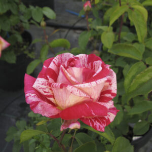 Variante a radice nuda della Rosa Papageno, con fiori grandi e profumati di colore rosso e bianco striato. Perfetta per impianti autunnali o primaverili.
