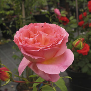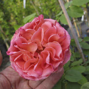 Rosa Floribunda con fiori grandi, doppi e molto profumati. Ha un portamento vigoroso e compatto, rifiorente e molto resistente alle malattie. È ideale per bordure e aiuole.