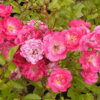 Rosa Floribunda con fiori semplici e leggermente profumati, di colore rosa brillante. Ha un portamento compatto e molto resistente, con una rifioritura continua durante la stagione.