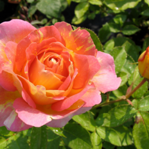 Rosa Floribunda dai fiori doppi, a coppa, leggermente profumati, di colore giallo con sfumature arancio. Ha un portamento compatto e rifiorente, ideale per bordure e giardini formali.