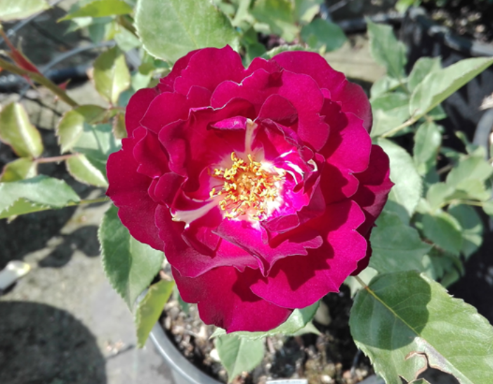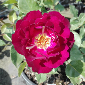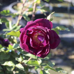 Rosa Ibrida di Tea con fiori grandi, doppi e profumati di colore rosso intenso. Ha un portamento vigoroso e rifiorente, ideale per bordure e giardini formali.
