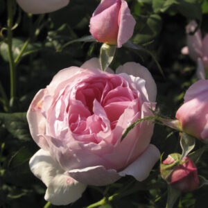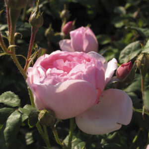 Rosa inglese con fiori doppi, a coppa, e leggermente profumati di colore rosa pallido. Ha un portamento compatto e vigoroso, rifiorente e resistente, ideale per bordure miste e giardini cottage.