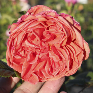 Rosa inglese con fiori doppi e profumati di colore arancione acceso. Ha un portamento vigoroso e cespuglioso, rifiorente e molto resistente alle malattie. Ideale per bordure e giardini colorati.
