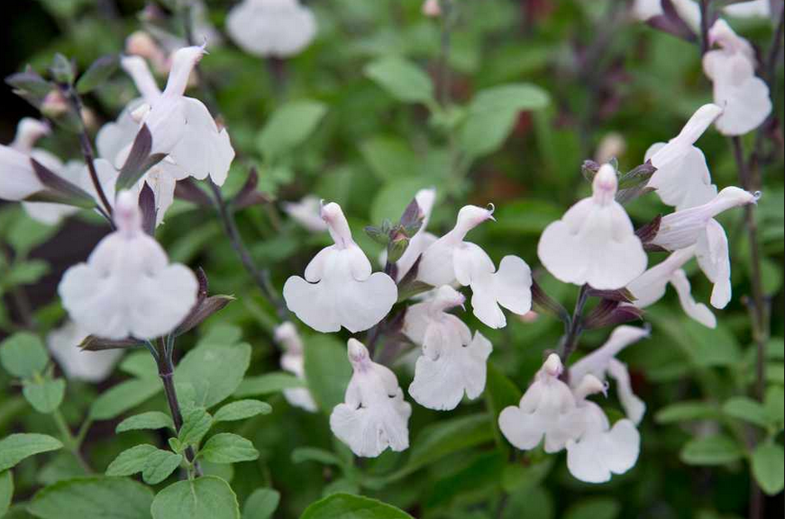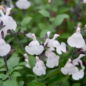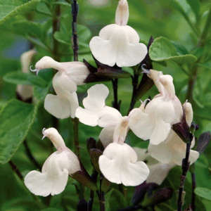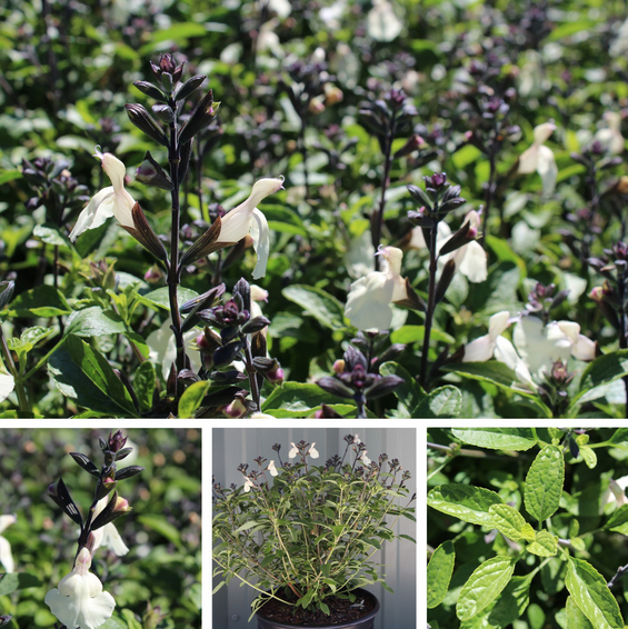 Salvia perenne con foglie aromatiche e fiori colorati, ideale per attrarre insetti impollinatori.