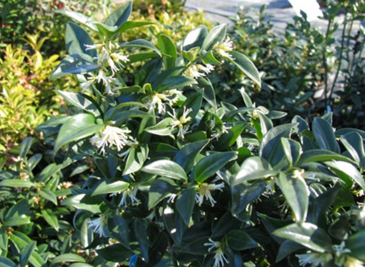 La Sarcococca confusa è un arbusto sempreverde compatto con foglie lucide e fiori bianchi profumati in inverno, seguiti da bacche nere. È ideale per bordure e giardini ombreggiati.