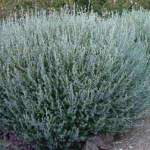 Il Teucrium fruticans è un arbusto sempreverde dal portamento arrotondato, con foglie argentee e piccoli fiori blu lavanda. È ideale per bordure, giardini mediterranei e come siepe informale.