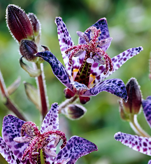 Il Tricyrtis ‘Blue Wonder’ è una pianta perenne nota per i suoi fiori esotici simili a orchidee, di colore blu violaceo con macchie più scure. È ideale per bordure ombreggiate e giardini boschivi.